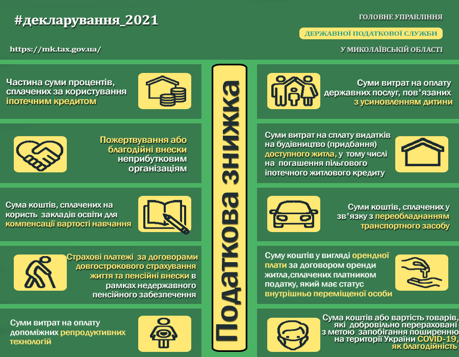 Головне управління ДПС у Миколаївській області повідомляє, що податкова знижка для фізичних осіб, які не є суб'єктами господарювання, - це документально підтверджена сума (вартість) витрат платника податку - резидента у зв'язку з придбанням товарів (робіт, послуг) у резидентів - фізичних або юридичних осіб протягом звітного року, на яку дозволяється зменшення його загального річного оподатковуваного доходу, одержаного за наслідками такого звітного року у вигляді заробітної плати, у випадках, визначених Податковим кодексом України (далі – Кодекс).