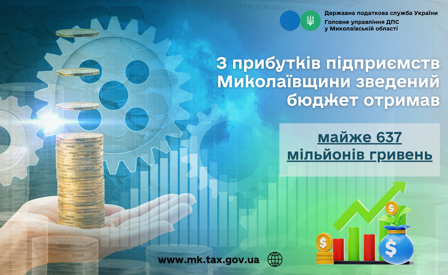У січні – серпні 2025 року до бюджетів усіх рівнів платниками податків Миколаївщини сплачено 636,7 млн грн податку на прибуток.