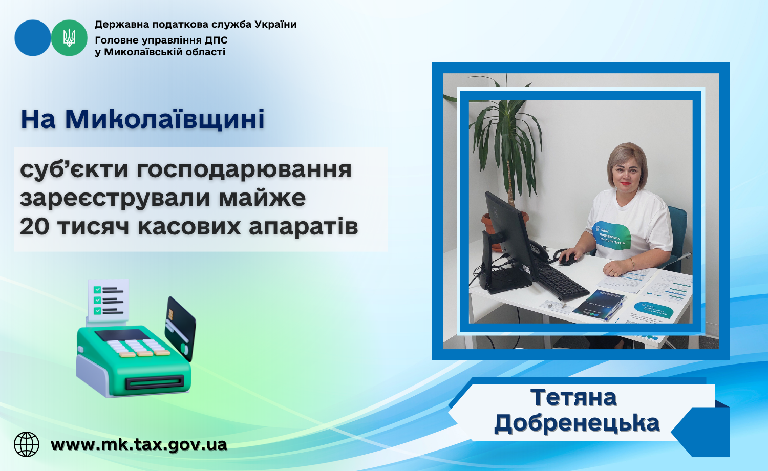 Тетяна Добренецька: На Миколаївщині суб’єкти господарювання зареєстрували майже 20 тисяч касових апаратів