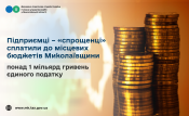 Підприємці – «спрощенці» сплатили до місцевих бюджетів Миколаївщини понад 1 мільярд гривень єдиного податку