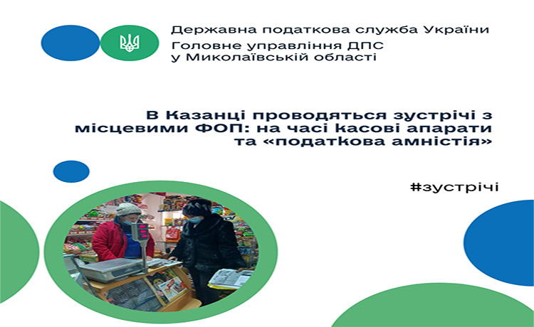 Начальник Казанківської ДПІ ГУ ДПС у Миколаївській області Тетяна Кривцова протягом тижня зустрічалася з представниками малого бізнесу та надавала консультації з приводу запровадження з 01 січня 2022 року обов’язкового використання РРО та/або ПРРО платниками єдиного податку другої – четвертої груп.
