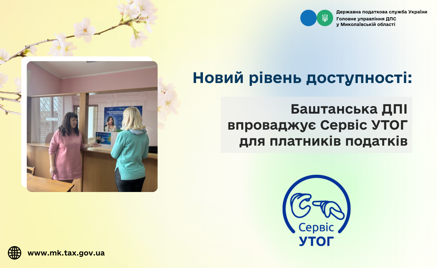 Новий рівень доступності: Баштанська ДПІ впроваджує Сервіс УТОГ для платників податків