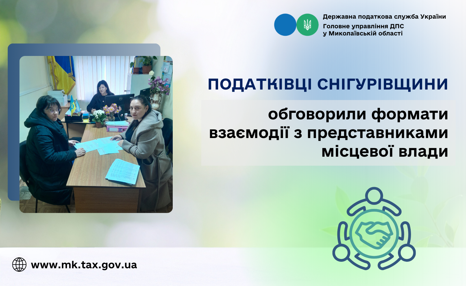 Відбулася робоча зустріч завідувачки Снігурівського сектору обслуговування платників Баштанської ДПІ Головного управління ДПС у Миколаївській області Наталії Дребот з представниками Снігурівської територіальної громади.