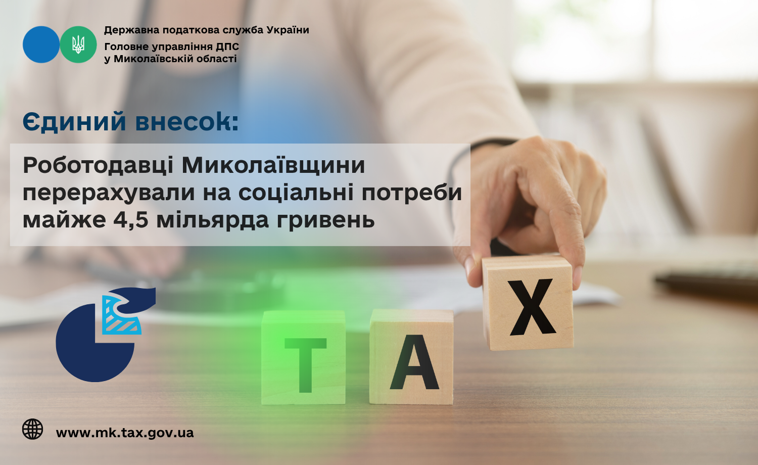 У січні – березні 2026 року платники податків Миколаївщини забезпечили до пенсійного та соціальних фондів України майже 4,5 млрд грн єдиного внеску на загальнообов’язкове державне соціальне страхування (далі – єдиний внесок), що на 17,3 відс., або на 659,1 млн грн більше, ніж у аналогічному періоді 2025 року.