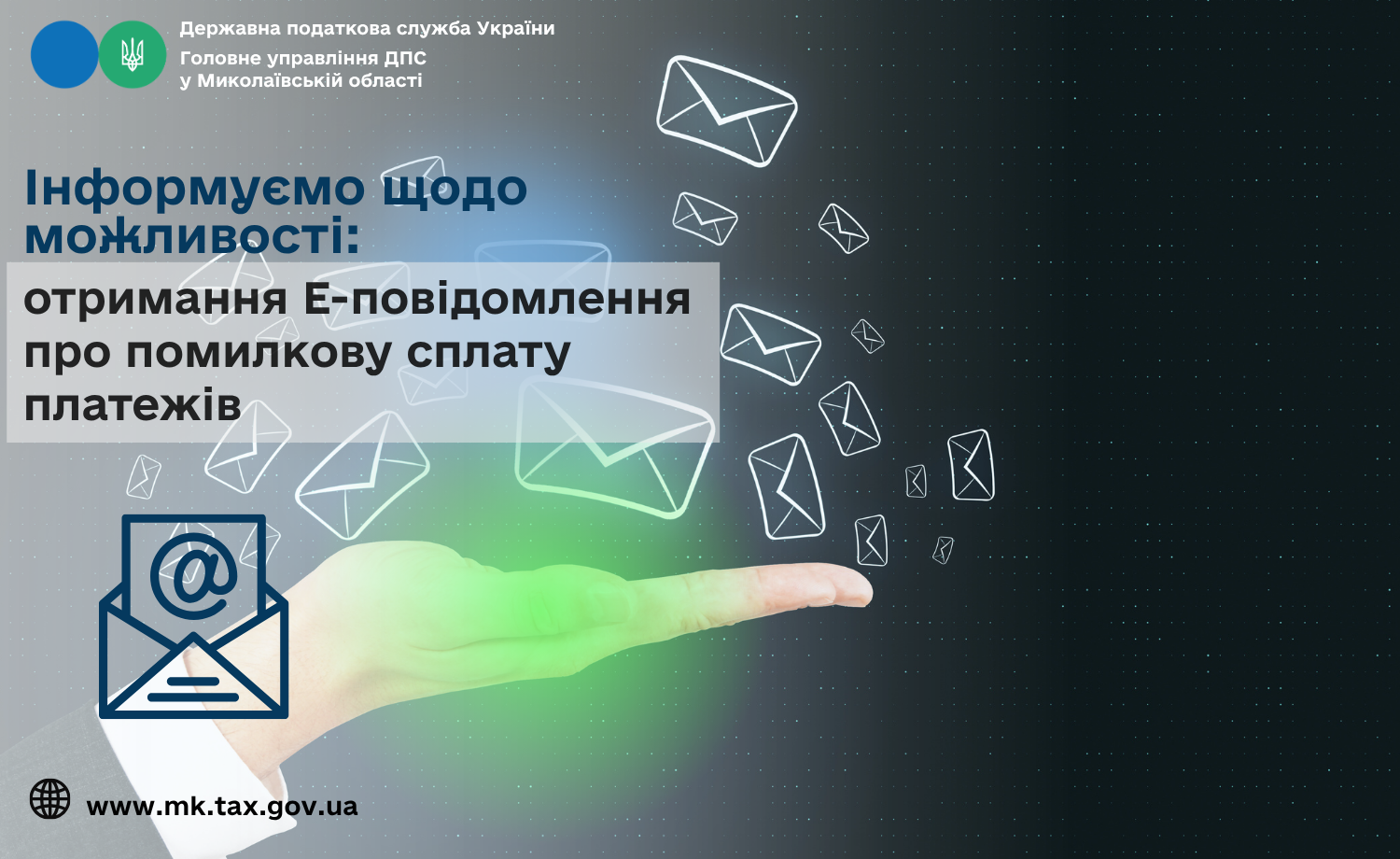 Головне управління ДПС у Миколаївській області повідомляє, що з метою підвищення рівня інформування платників податків про суми помилково сплачених податкових платежів, єдиного внеску в Електронному кабінеті платника (далі – Електронний кабінет) розроблено та впроваджено новий сервіс «Е-повідомлення».