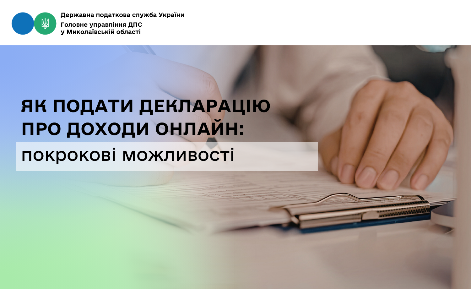 У рамках проведення кампанії декларування у 2026 році Головне управління ДПС у Миколаївській області нагадує, що для фізичних осіб в Електронному кабінеті платника (далі – Електронний кабінет) доступна можливість подання декларації про майновий стан і доходи через меню «ЕК для громадян» та меню «Введення звітності» Електронного кабінету.