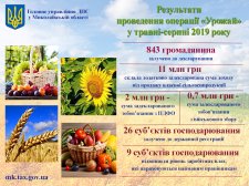 За результатами проведення виїзних нарад, засідань робочих комісій, у рамках проведення операції «Урожай», протягом травня – серпня 2019 року додатково залучено до декларування 843 громадянина. Додатково задекларована сума доходу від продажу власної сільгосппродукції склала 11 млн гривень. Податкове зобов’язання з ПДФО задекларовано у сумі 2 млн грн, військового збору – 0,17 млн гривень.