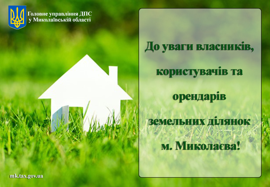 Головне управління ДПС у Миколаївській області звертає увагу, що з 01.01.2020 року набирає чинності рішення Миколаївської міської ради від 10.07.2019 №52/18 «Про затвердження технічної документації з нормативної грошової оцінки земель міста Миколаєва».