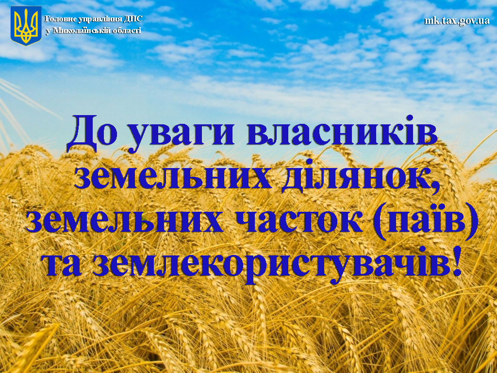 До уваги власників земельних ділянок, земельних часток (паїв) та землекористувачів!