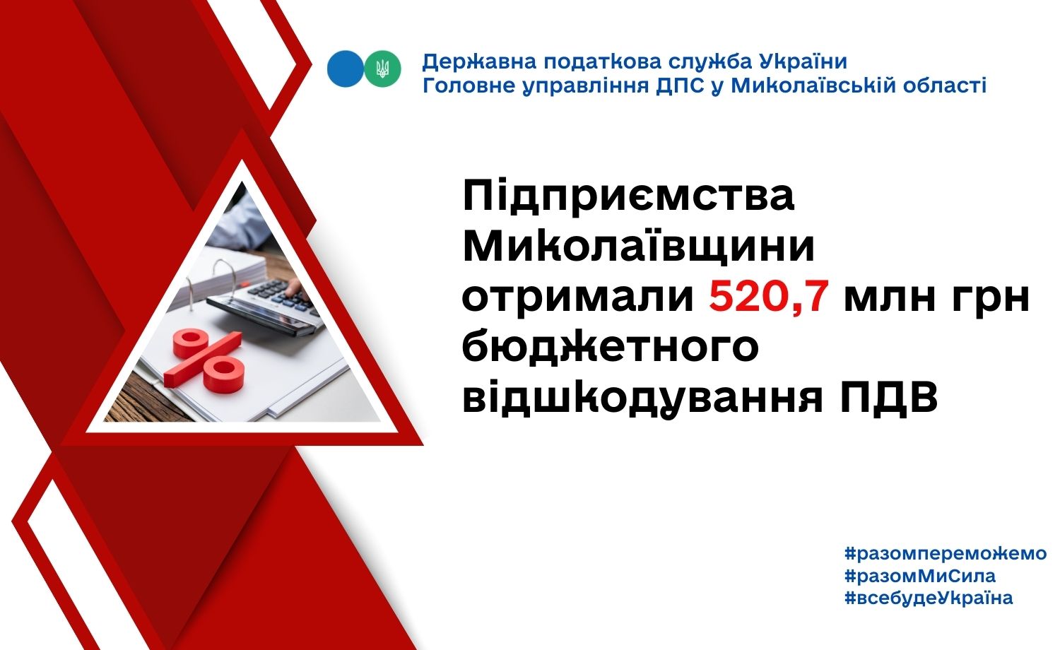 За 9 місяців 2023 року 43 суб’єктам господарювання Миколаївщини відшкодовано податку на додану вартість у сумі 520,7 млн гривень.