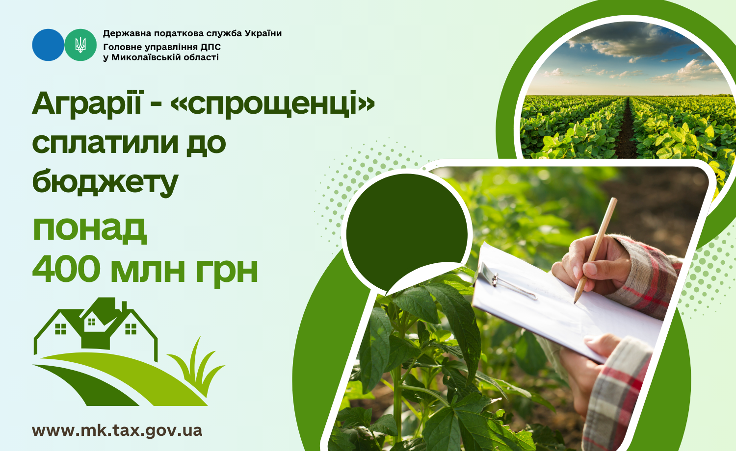 У січні – жовтні 2024 року сільгосптоваровиробниками Миколаївщини, які використовують спрощену систему оподаткування IV групи, до місцевих бюджетів області перераховано єдиного податку разом з мінімальним податковим зобов’язанням у сумі 400,6 млн гривень.