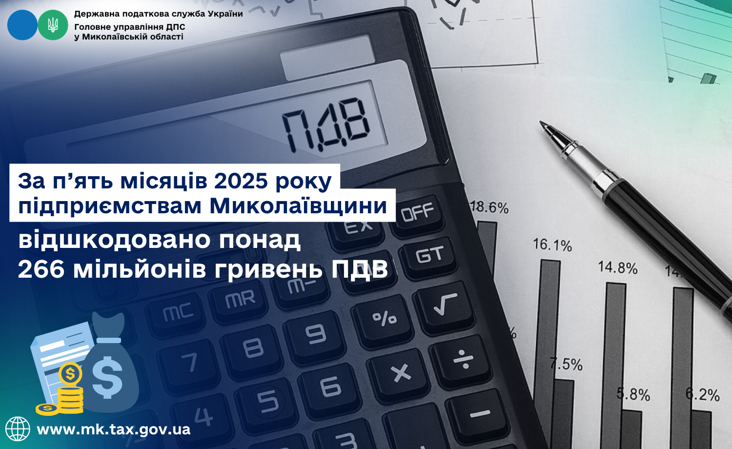 Разом з цим, упродовж п’яти місяців 2025 року з урахуванням попередніх періодів 39 платникам Миколаївщини відшкодовано ПДВ у сумі 266,1 млн гривень.