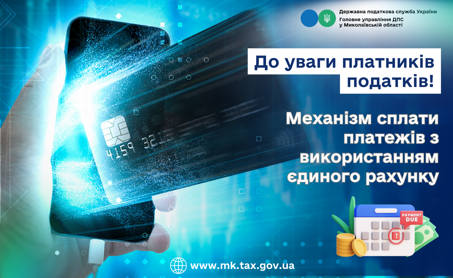 Головне управління ДПС у Миколаївській області повідомляє, що впровадження та функціонування єдиного рахунку регулюється Порядком функціонування єдиного рахунку та виконання норм статті 351 Податкового кодексу України центральними органами виконавчої влади, затвердженим Постановою Кабінету Міністрів України від 29 квітня 2020 року № 321.