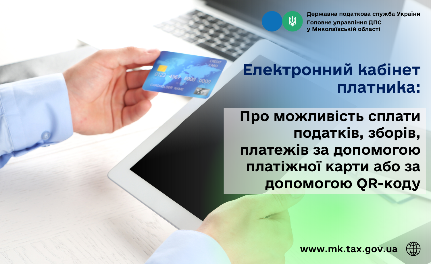 Електронний кабінет платника: Про можливість сплати податків, зборів, платежів за допомогою платіжної карти або за допомогою QR-коду