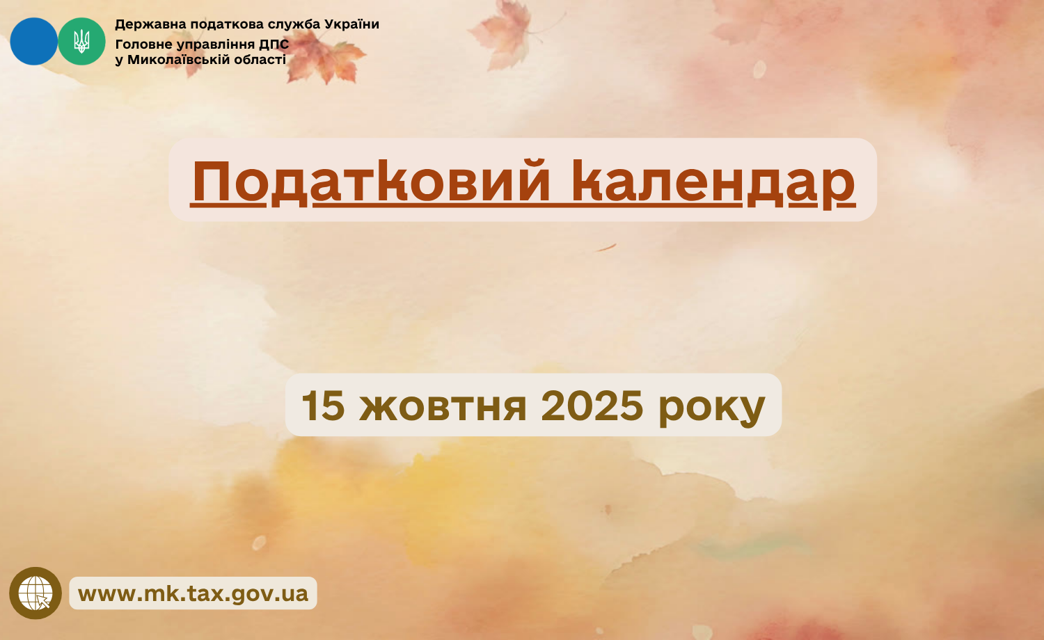 Головне управління ДПС у Миколаївській області повідомляє, що 15 жовтня 2025 року останній день подання: