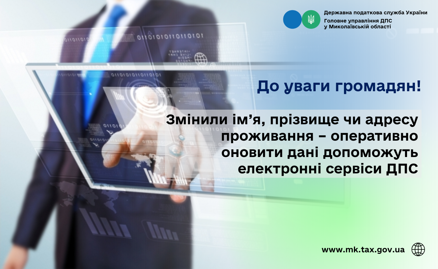До уваги громадян! Змінили ім’я, прізвище чи адресу проживання – оперативно оновити дані допоможуть електронні сервіси ДПС