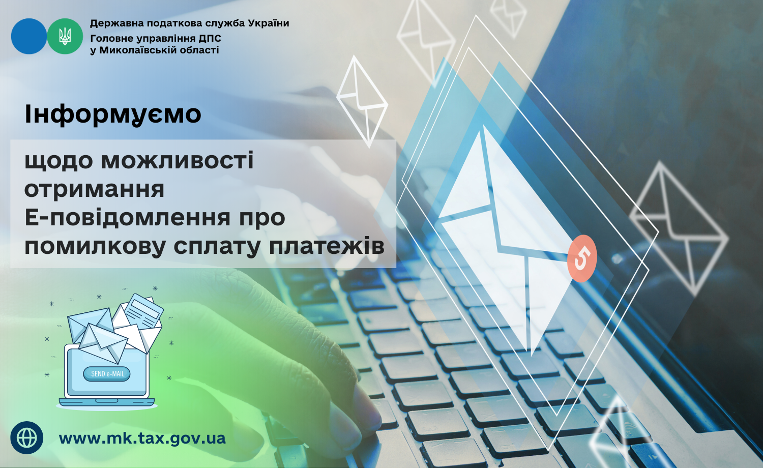 Головне управління ДПС у Миколаївській області повідомляє, що з метою підвищення рівня інформування платників податків про суми помилково сплачених податкових платежів, єдиного внеску в Електронному кабінеті платника (далі – Електронний кабінет) розроблено та впроваджено новий сервіс «Е-повідомлення».