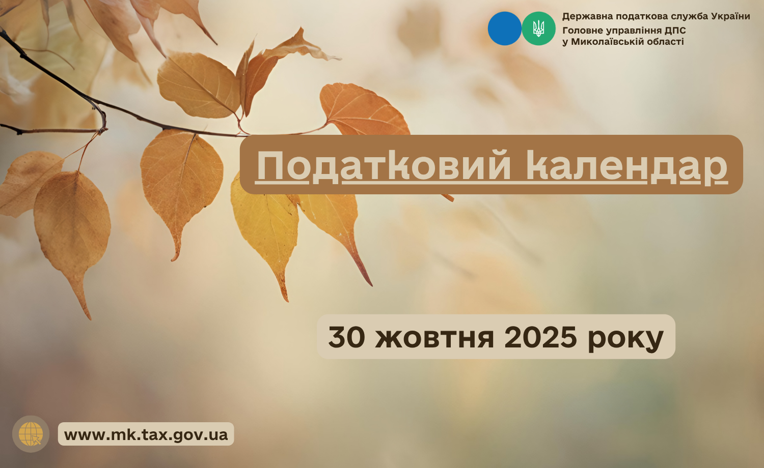 Головне управління ДПС у Миколаївській області повідомляє, що 30 жовтня 2025 року останній день сплати: