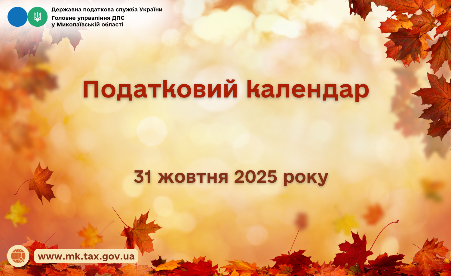 Податковий календар на 31 жовтня 2025 року