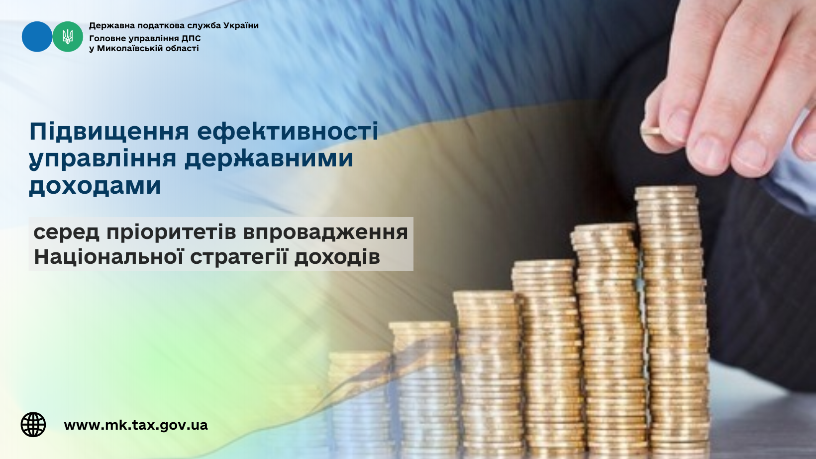 Головне управління ДПС у Миколаївській області повідомляє, що для реформування податкової та митної політик і перегляду процесів їх адміністрування у грудні 2023 року Уряд затвердив Національну стратегію доходів до 2030 року (далі – НСД).