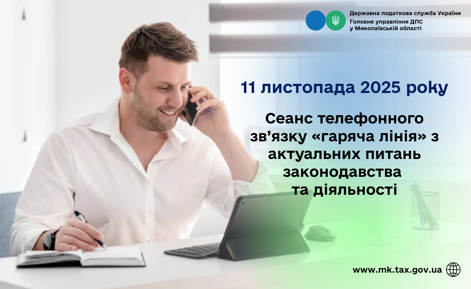 Головне управління ДПС у Миколаївській області проводить з 10 год. 00 хв. до 11 год. 00 хв. 11 листопада 2025 року сеанс телефонного зв’язку «гаряча лінія» з актуальних питань законодавства та діяльності