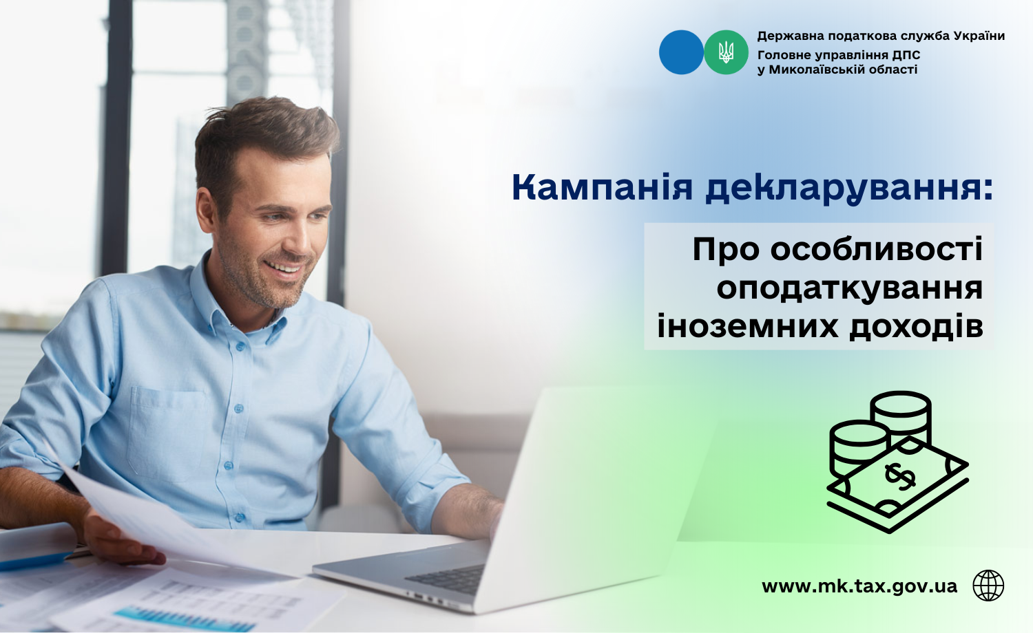 Головне управління ДПС у Миколаївській області звертає увагу, що фізичні особи – резиденти України зобов’язані декларувати доходи, отримані як на території України, так і за її межами. Іноземні доходи підлягають оподаткуванню в Україні.