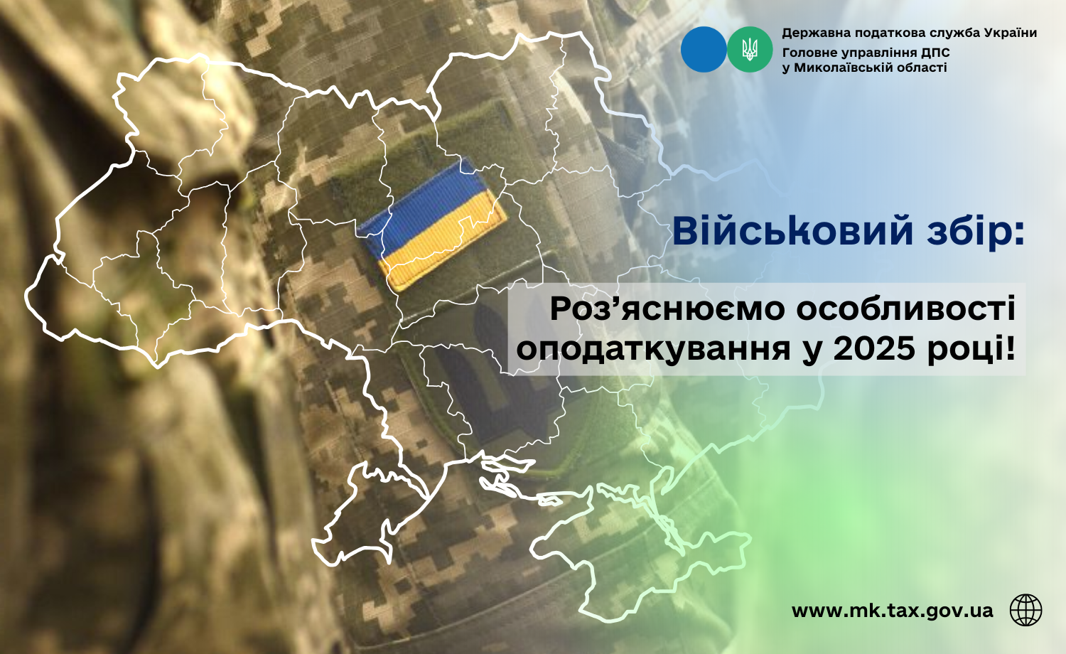 Головне управління ДПС у Миколаївській області звертає увагу фізичних осіб – підприємців (далі – ФОП), що з 01 січня 2025 року усі підприємці є платниками військового збору.