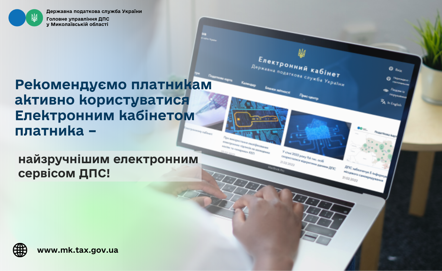 Головне управління ДПС у Миколаївській області вкотре нагадує платникам податків про ефективність електронних сервісів ДПС. Сервіси запроваджено з метою забезпечення комфорту та зручності платників у спілкуванні з податковою службою.