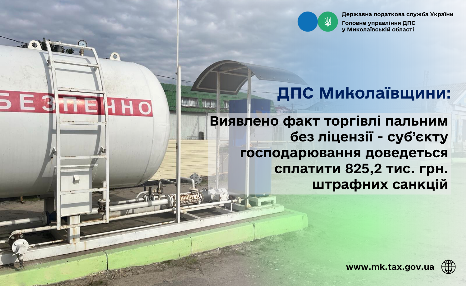 ДПС Миколаївщини: Виявлено факт торгівлі пальним без ліцензії - суб’єкту господарювання доведеться сплатити 825,2 тис. грн. штрафних санкцій