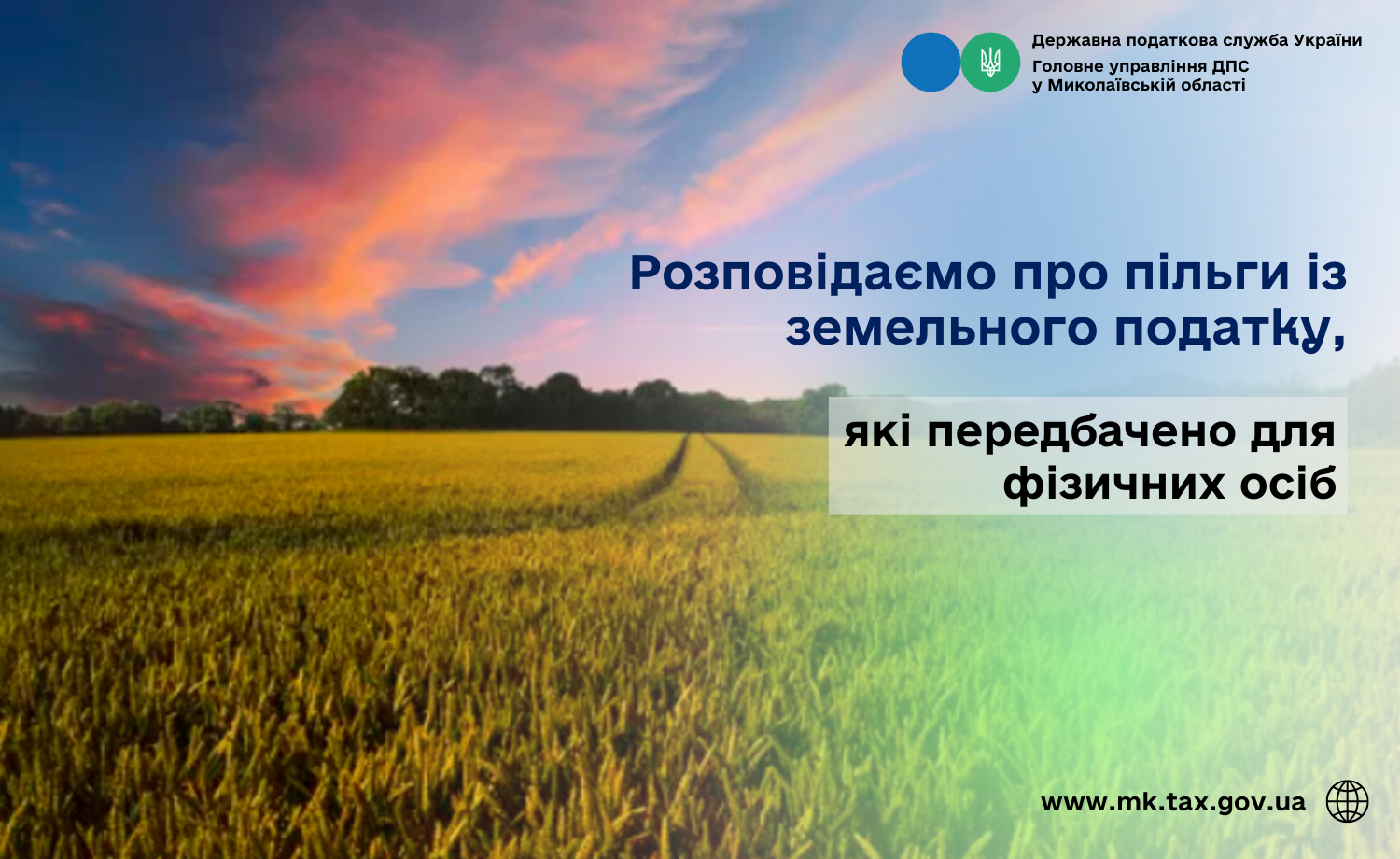 Повідомляємо, що пільги щодо сплати земельного податку для фізичних осіб наведено у статі 281 Податкового кодексу України від 02 грудня 2010 року № 2755-VI зі змінами та доповненнями (далі – Кодекс).