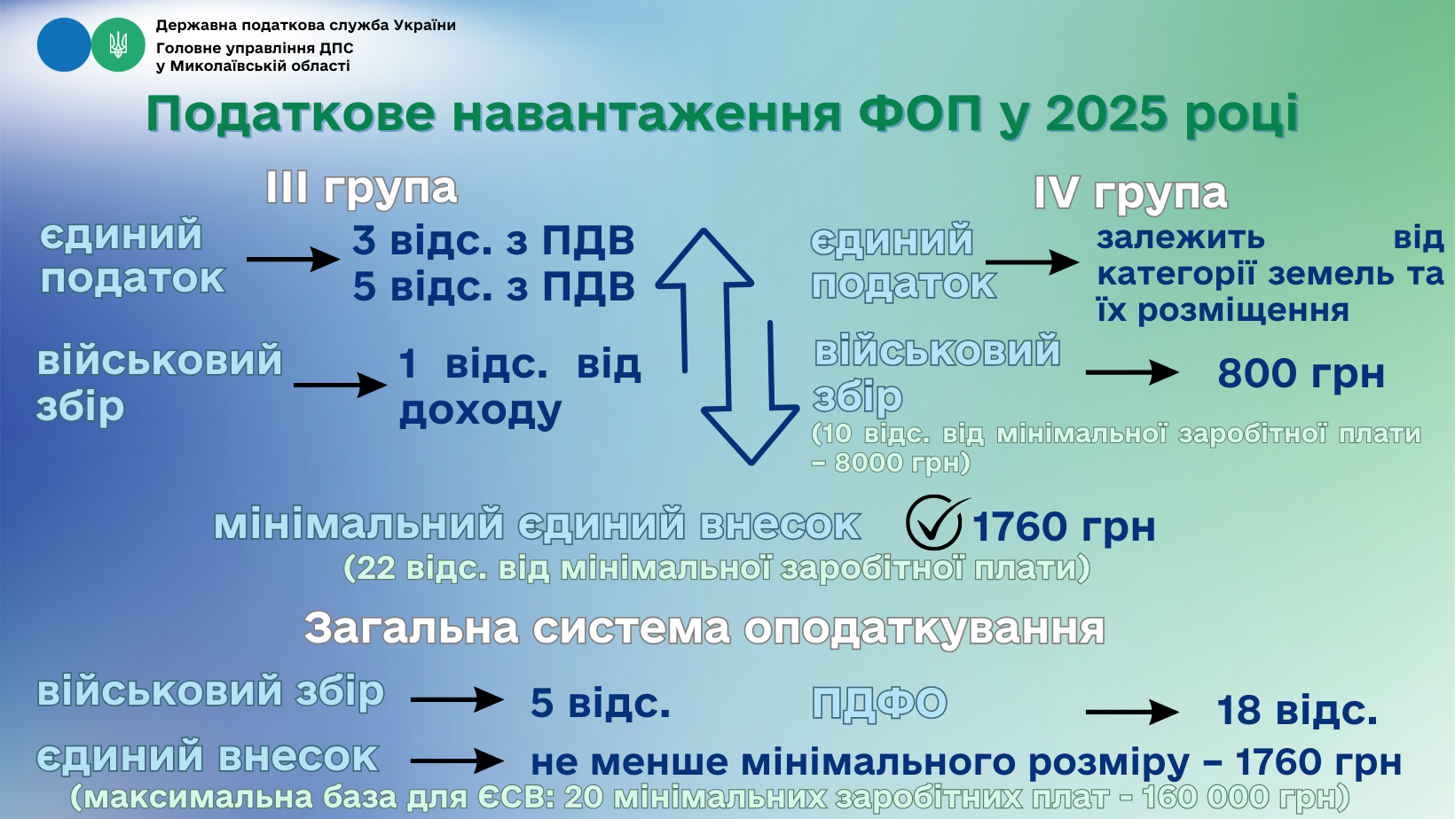 ДПС Миколаївщини інформує про податкове навантаження для ФОП у 2025 році