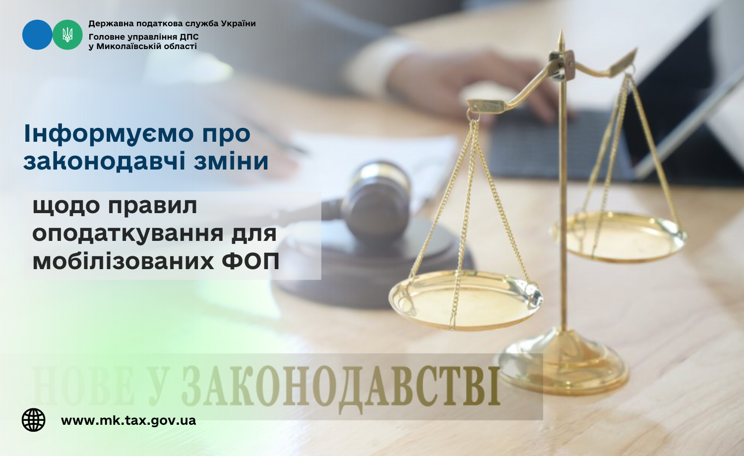 Інформуємо про законодавчі зміни щодо правил оподаткування для мобілізованих ФОП