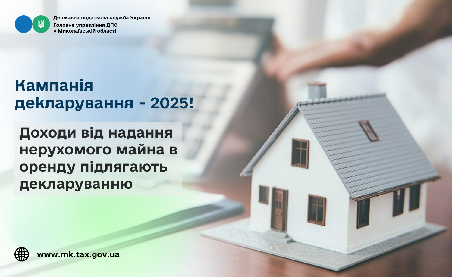 Кампанія декларування - 2025! Доходи від надання нерухомого майна в оренду підлягають декларуванню