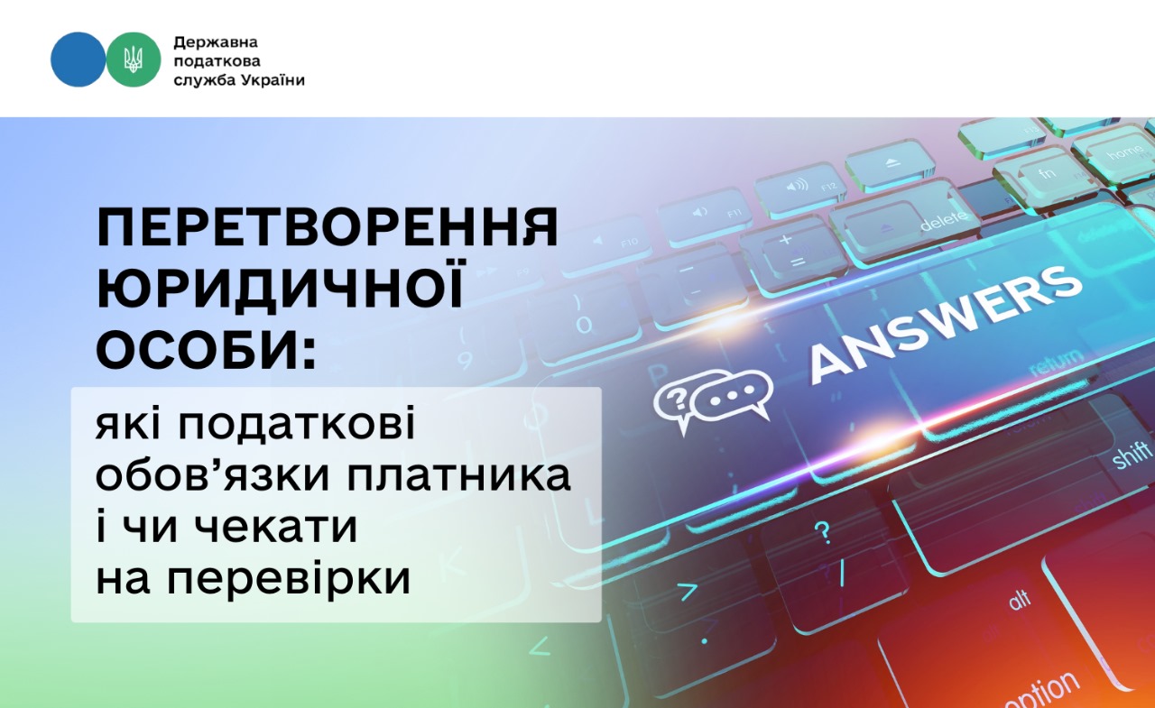 Державна податкова служба України підготувала відповіді на актуальні питання платників щодо перевірок, ПДВ, декларацій, реєстраційних дій та перенесення показників у випадку реорганізації юридичних осіб шляхом перетворення (зміни організаційно-правової форми підприємства).