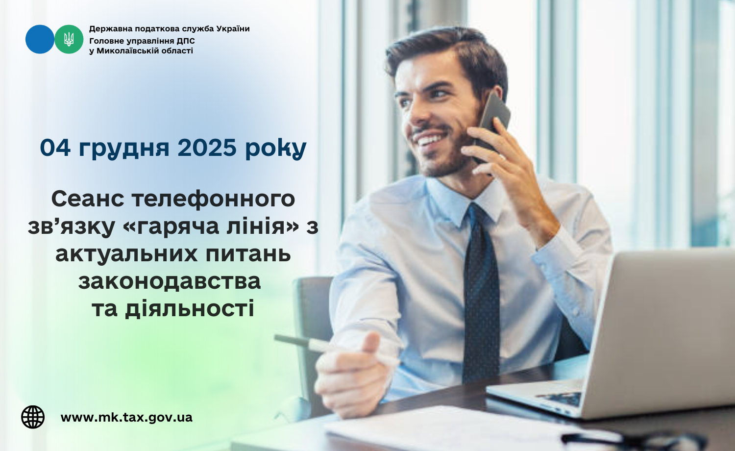 Головне управління ДПС у Миколаївській області проводить з 10 год. 00 хв. до 11 год. 00 хв. 04 грудня 2025 року сеанс телефонного зв’язку «гаряча лінія» з актуальних питань законодавства та діяльності