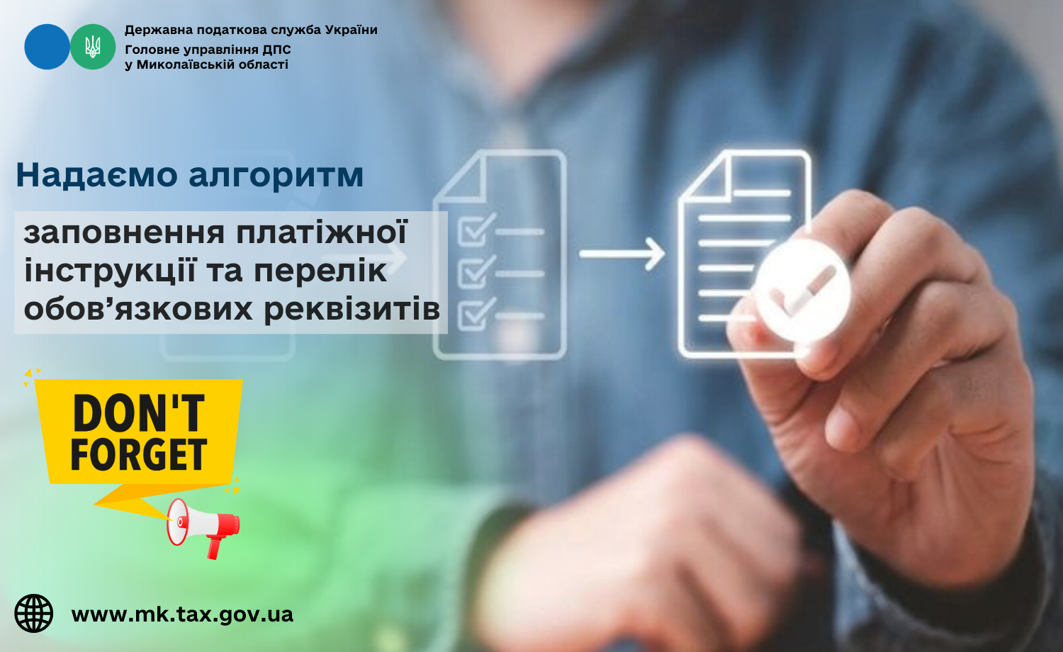 Надаємо алгоритм заповнення платіжної інструкції та перелік обов’язкових реквізитів