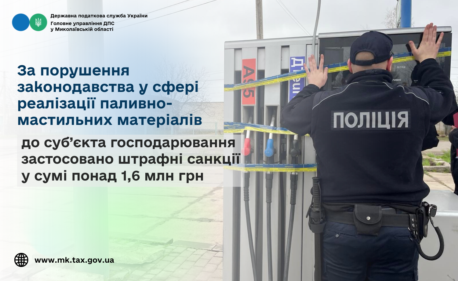 За порушення законодавства у сфері реалізації паливно-мастильних матеріалів до суб’єкта господарювання застосовано штрафні санкції у сумі понад 1,6 млн грн