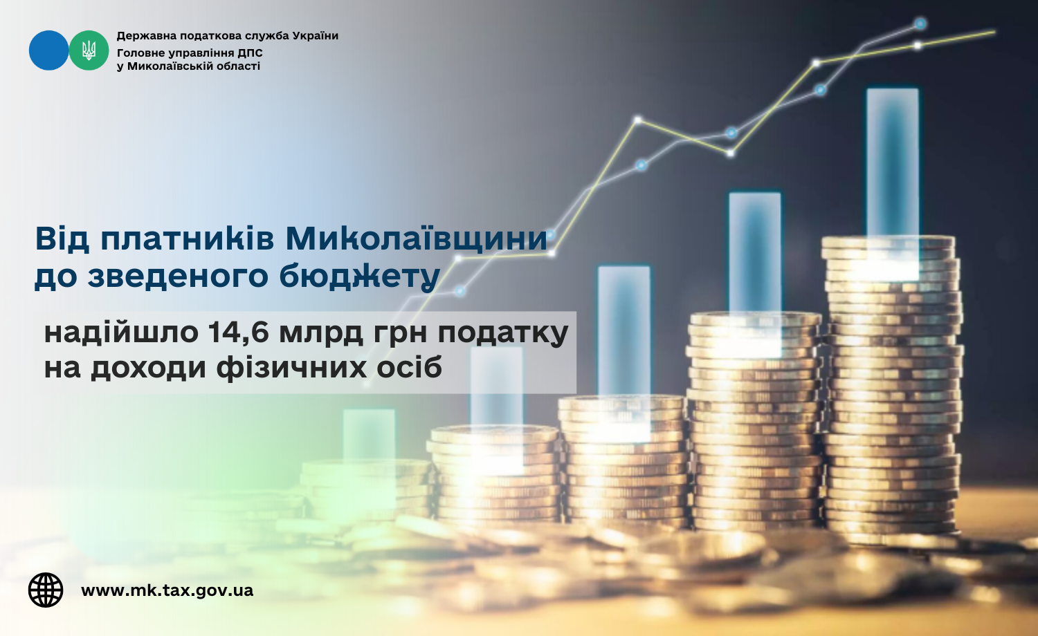Від платників Миколаївщини до зведеного бюджету надійшло 14,6 млрд грн податку на доходи фізичних осіб