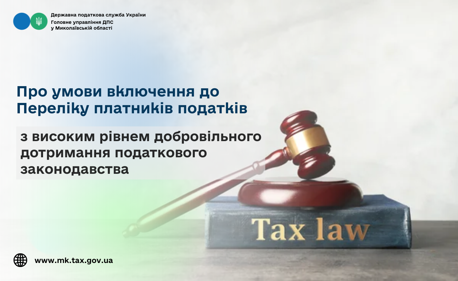 Головне управління ДПС у Миколаївській області інформує підприємства та підприємців регіону щодо умов включення до Переліку платників податків з високим рівнем добровільного дотримання податкового законодавства.