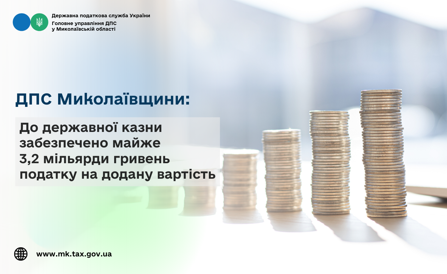 За 11 місяців 2025 року суб’єкти підприємництва Миколаївщини сплатили до державного бюджету майже 3,2 млрд грн податку на додану вартість (далі – ПДВ) з вироблених в Україні товарів, що на 167,4 млн грн перевищує надходження відповідного періоду минулого року. Питома вага ПДВ у загальній сумі надходжень до державного бюджету становить 21,2 відсотка.