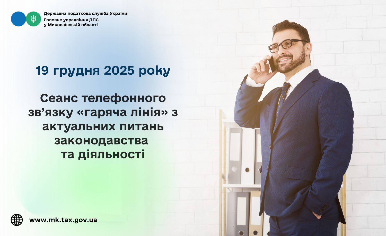 Головне управління ДПС у Миколаївській області проводить з 13 год. 00 хв. до 14 год. 00 хв. 19 грудня 2025 року сеанс телефонного зв’язку «гаряча лінія» з актуальних питань законодавства та діяльності