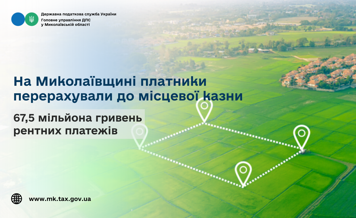 На Миколаївщині платники перерахували до місцевої казни 67,5 мільйона гривень рентних платежів