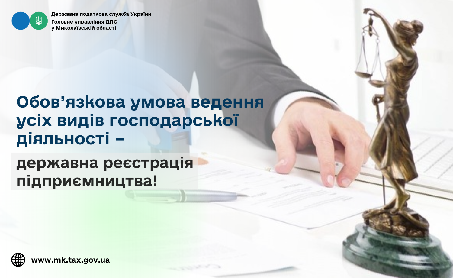Головне управління ДПС у Миколаївській області вкотре наголошує, що державна реєстрація суб’єктів господарювання – обов’язкова умова здійснення усіх видів підприємницької діяльності та запорука законності її ведення.