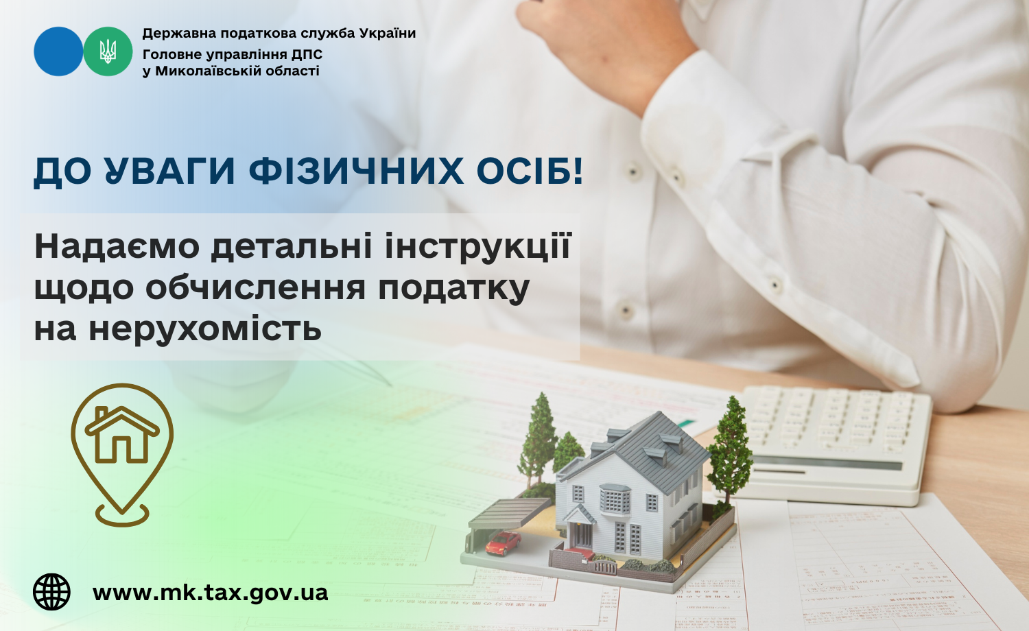 Також повідомляємо, що платники податків можуть скористатися Калькулятором для обчислення сум податку на нерухоме майно, відмінне від земельної ділянки, з фізичних осіб, розміщеного на сайті ДПС України за покликанням: https://tax.gov.ua/calculator/realty.