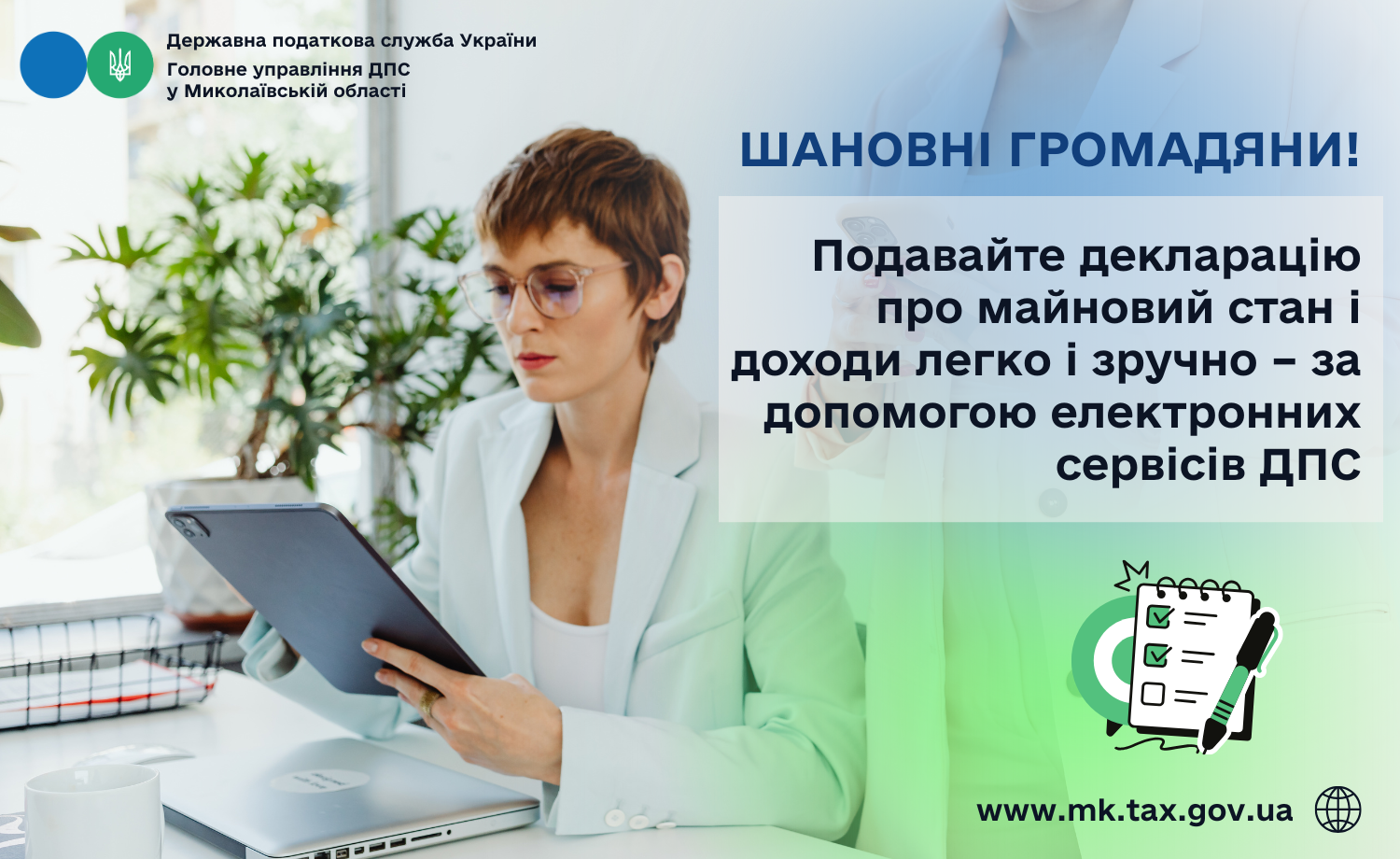 Шановні громадяни! Подавайте декларацію про майновий стан і доходи легко і зручно – за допомогою електронних сервісів ДПС
