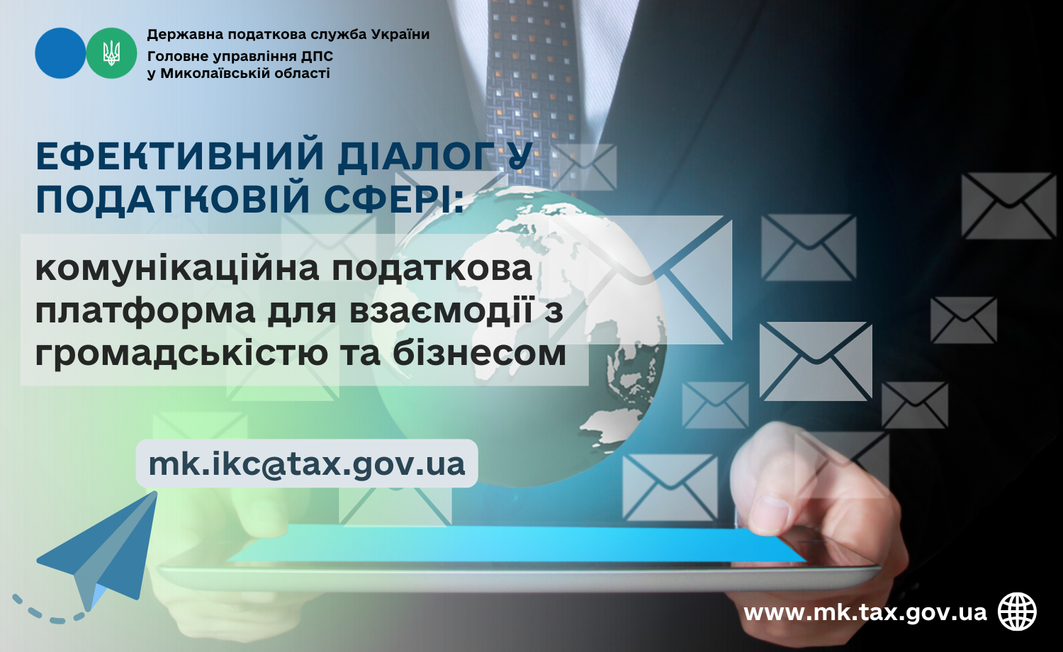 У Головному управлінні ДПС у Миколаївській області створено окрему електронну скриньку: mk.ikc@tax.gov.ua, на яку можна надіслати запит або звернення, в якому необхідно викласти зміст питання, що потребує вирішення, а також вказати номер телефону або e-mail для зворотного зв’язку – надання відповідей. Звернення оформлюється відповідно до встановлених вимог документування, зокрема в обов’язковому порядку зазначається адресат, дані відправника та інші реквізити. Лист повинен містити підпис особи, яка звертається із запитом, або її уповноваженої особи.