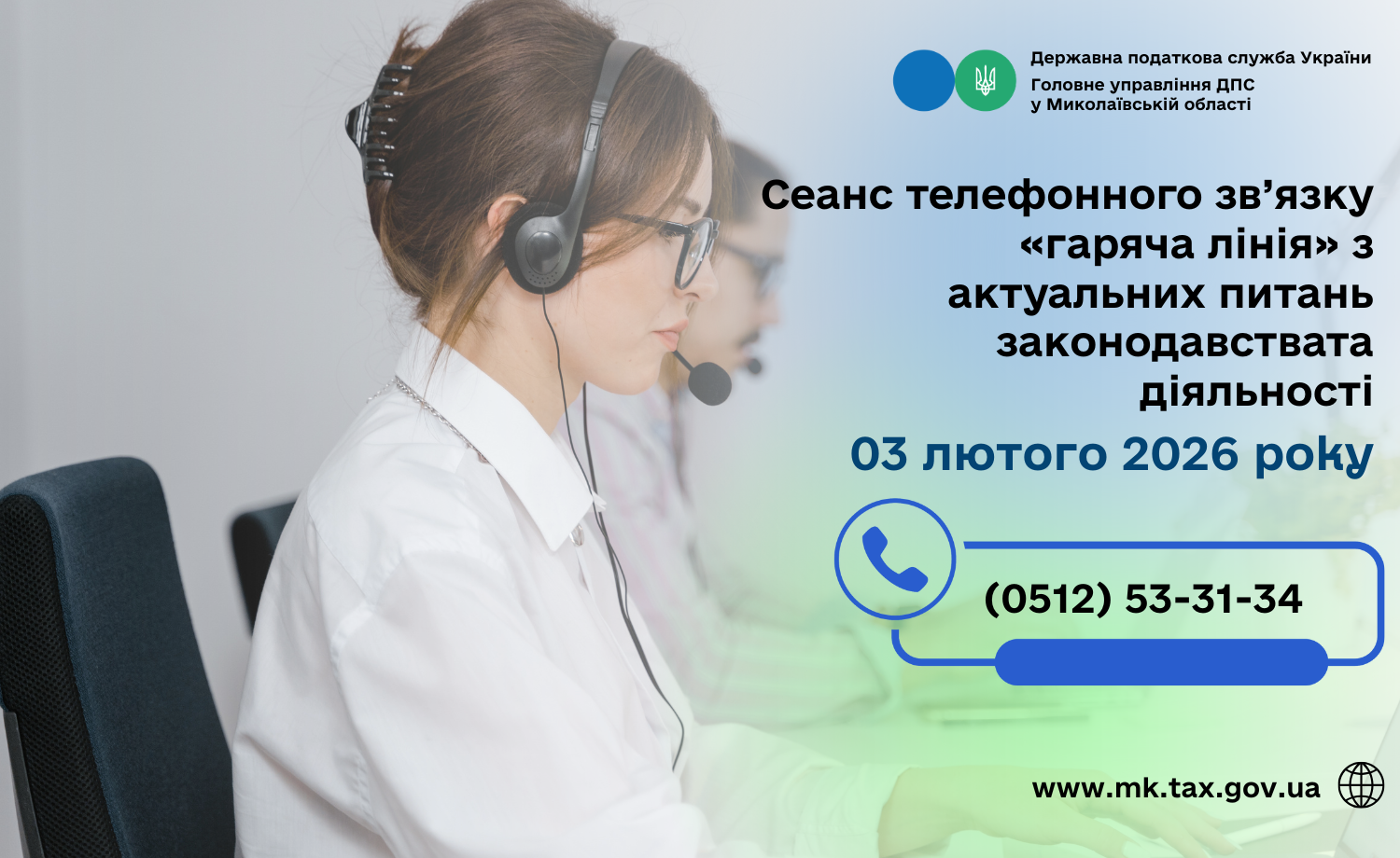 Головне управління ДПС у Миколаївській області проводить з 10 год. 00 хв. до 11 год. 00 хв. 03 лютого 2026 року сеанс телефонного зв’язку «гаряча лінія» з актуальних питань законодавства та діяльності