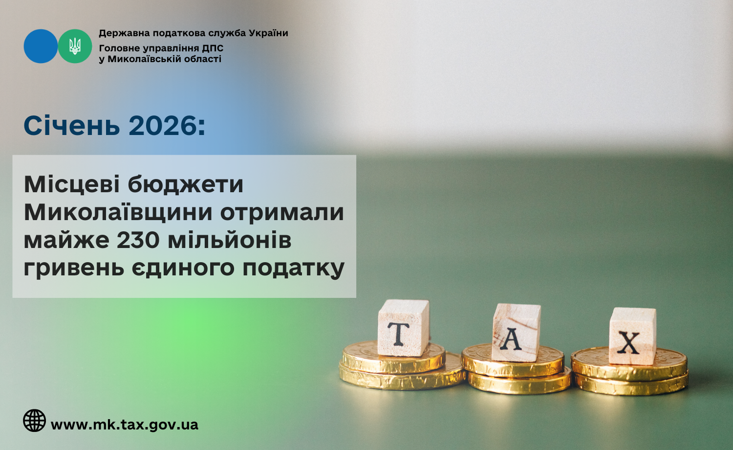 Січень 2026: Місцеві бюджети Миколаївщини отримали майже 230 мільйонів гривень єдиного податку