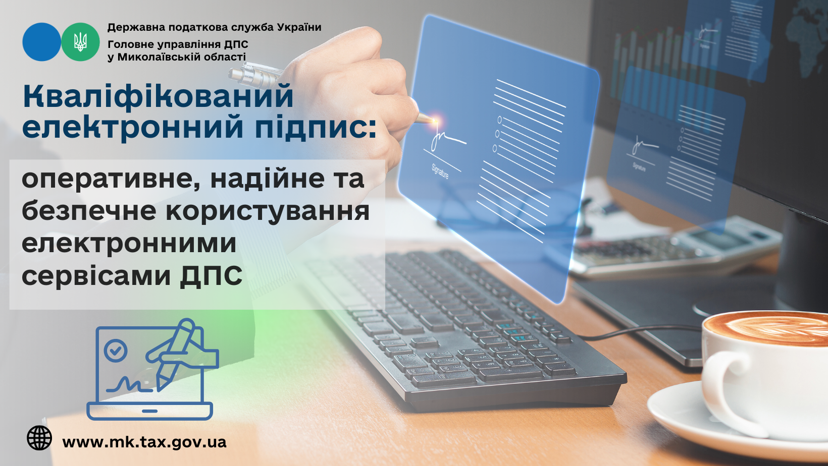 Шановні платники! Нагадуємо, що згенерувати ключі та отримати нові кваліфіковані сертифікати електронного підпису чи печатки до закінчення строку чинності попередніх сертифікатів можна: