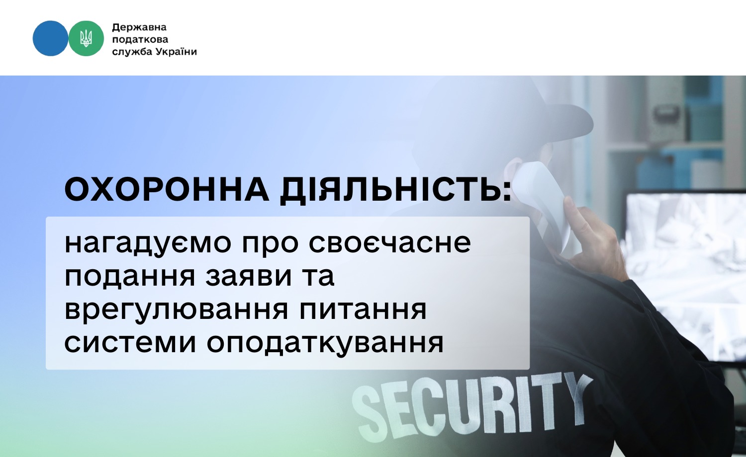 Державна податкова служба нагадує суб’єктам господарювання, які надають охоронні послуги, про необхідність своєчасно подати заяву про відмову від спрощеної системи оподаткування та перейти на загальну систему.